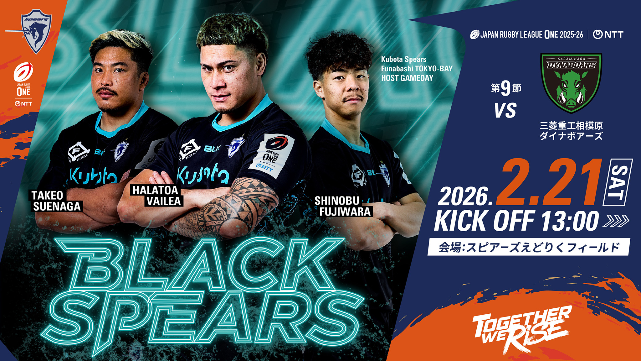 セカンドジャージー(黒)を着用することに合わせ、えどりくを「黒」でジャックするイベント『BLACK SPEARS』を初開催!いつものホストゲームとは様相を変え、黒を基調とした当日限定グッズやグルメなど、年齢や性別を越えてお楽しみ頂けるイベントを準備してお待ちしています。心はOrange、纏うはBlackの精神で最後までお楽しみください。