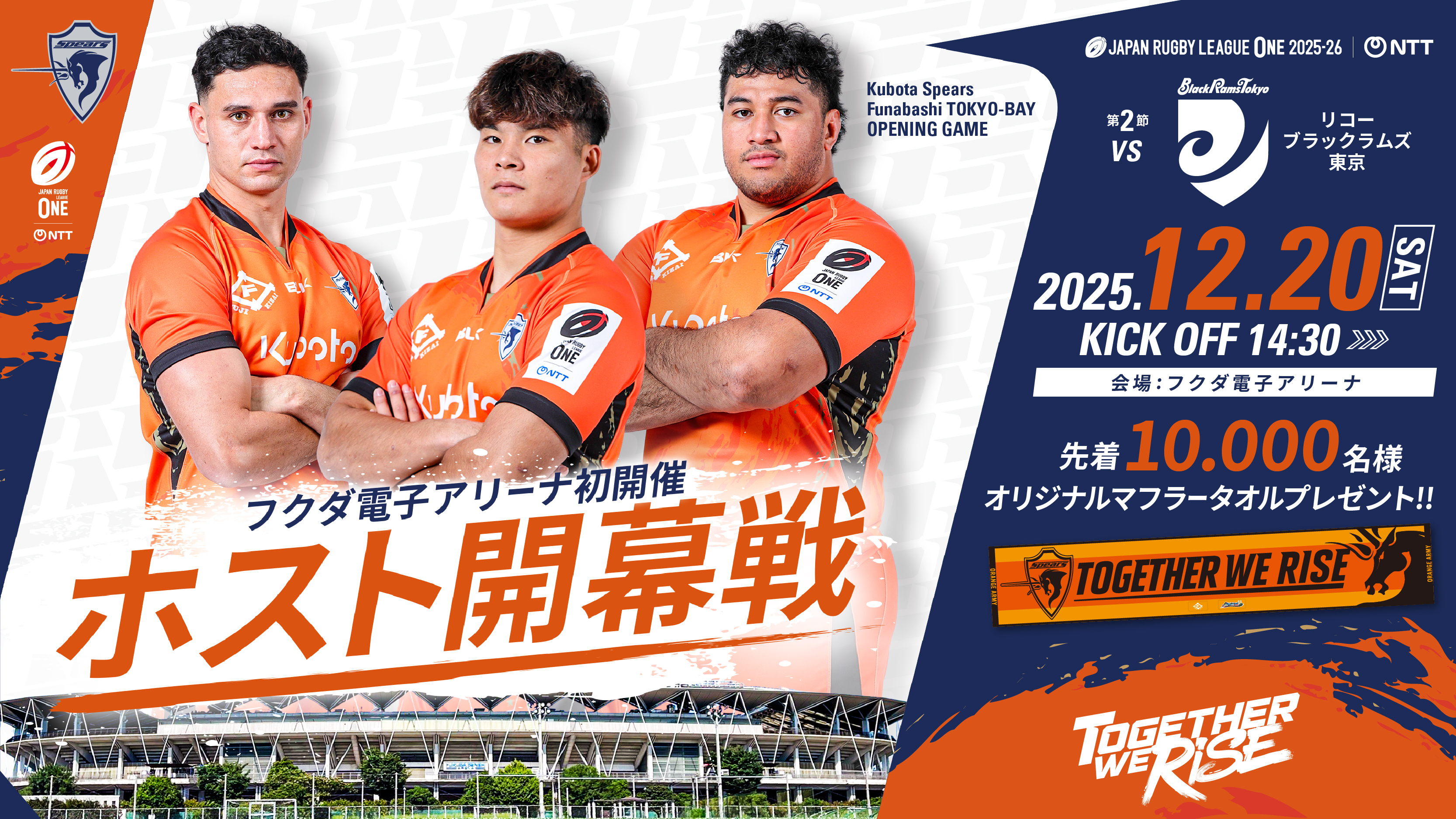 | 対象試合 | NTTジャパンラグビーリーグワン2025-26 第2節 2025年12月20日(土)14時30分キックオフ クボタスピアーズ船橋・東京ベイvs リコーブラックラムズ東京(フクダ電子アリーナ) |