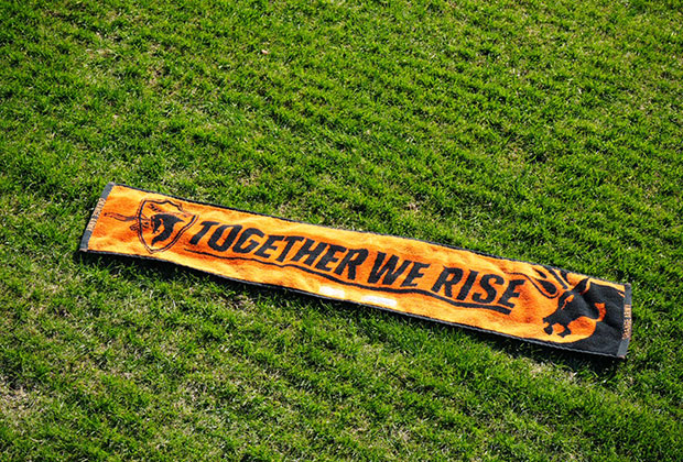 スピアーズは今シーズン、「Together We Rise」という運営スローガンを掲げています。チームに関わるすべての人々と共に、再び頂点を目指す。そうしたチームが団結するための合言葉となるのがこの「Together We Rise」です。今回プレゼントするマフラータオルは、このスローガンを全面に押し出し、声援と共に掲げることで選手の背中を押してほしいという狙いがあります。