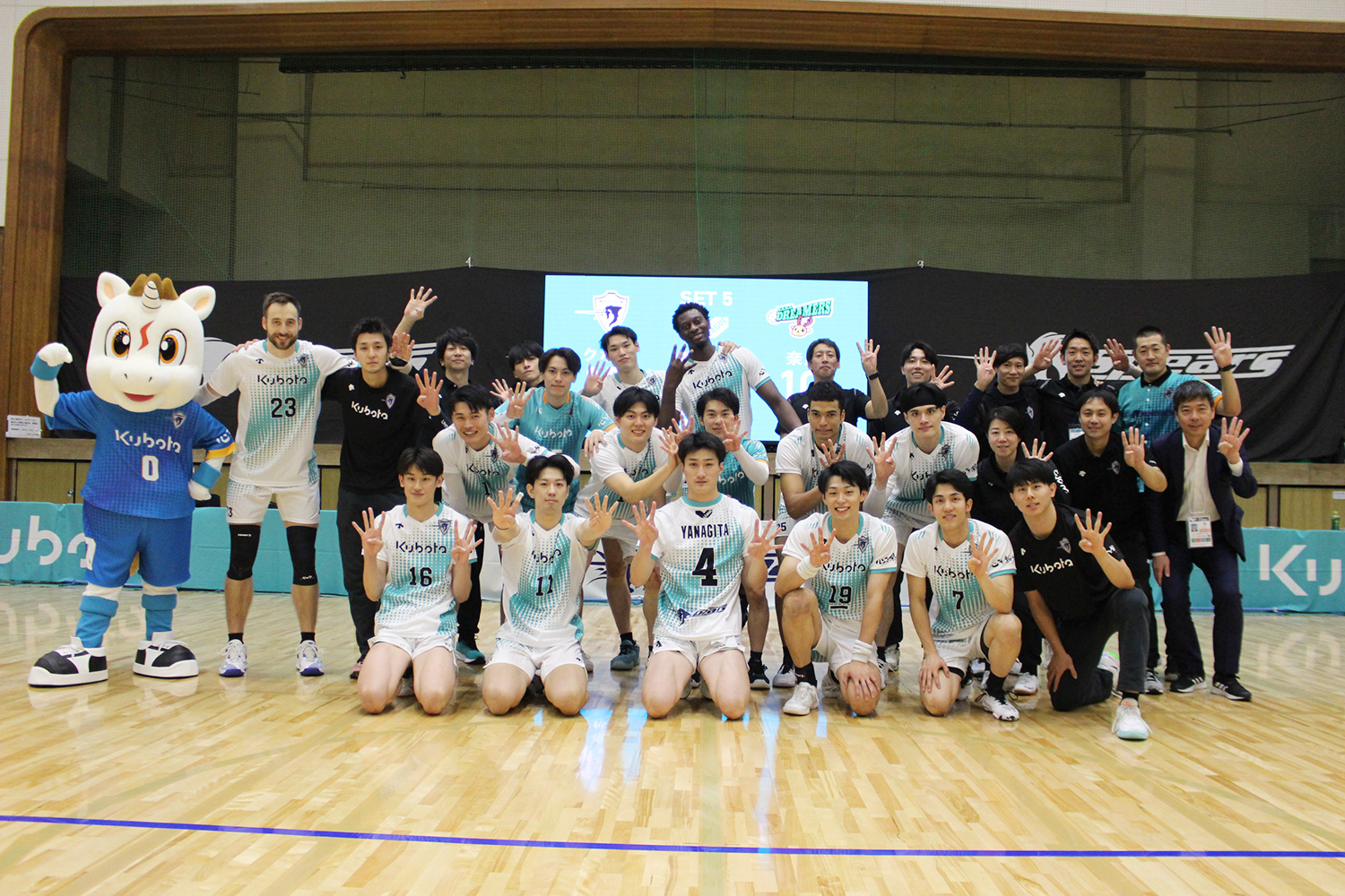 本日の試合も相手の奈良ドリーマーズの素晴らしい攻撃に対して我々のディフェンスが機能し、第1、2セット連取することができました。逆に第3セット以降はこちらのオフェンスが抑えられて、我々自身の足も止まってしまい、拾えるボールを落としてしまったことが苦戦の原因だと感じています。